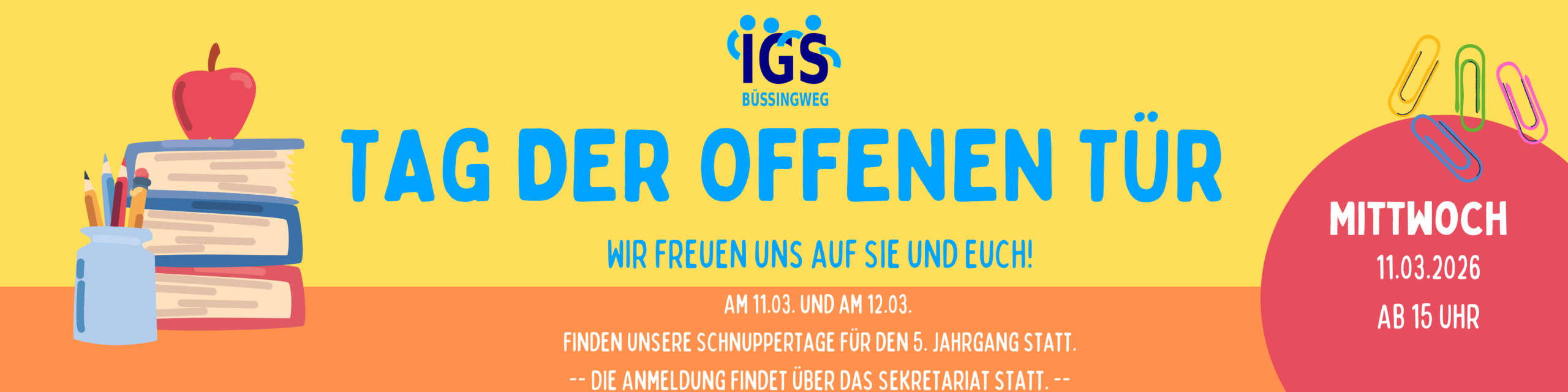 Am Mittwoch, den 11. März 2026, öffnet die IGS Büssingweg von 15:00 bis 17:00 Uhr ihre Türen für alle Interessierten. Eingeladen sind insbesondere Eltern, Schülerinnen und Schüler sowie alle, die unsere Schule näher kennenlernen möchten. Schule vor Ort erleben Beim...