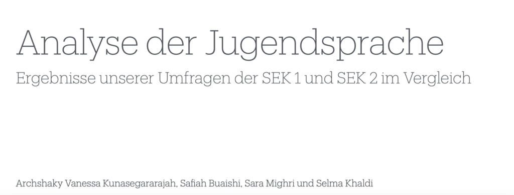 Im Rahmen des Projektes „Jugendsprache“ haben sich Schülerinnen intensiv mit der Sprache ihrer Generation auseinandergesetzt. Ziel war es, herauszufinden, welche Begriffe aktuell verwendet werden, wie sich Jugendsprache entwickelt und welche Bedeutung sie im schulischen Alltag hat.