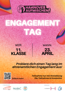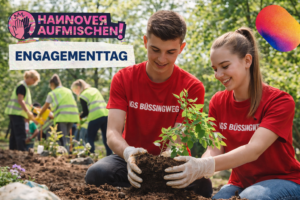 Der Engagementtag ist ein stadtweites Format in Hannover, das jungen Menschen die Möglichkeit gibt, freiwilliges Engagement kennenzulernen und aktiv auszuprobieren. Dabei arbeiten sie in sozialen, ökologischen, kulturellen oder sportlichen Projekten mit und lernen gleichzeitig Vereine und Organisationen kennen. Ziel ist es, Interesse für langfristiges Engagement zu wecken und zu zeigen, wie vielfältig die Möglichkeiten sind, sich einzubringen.