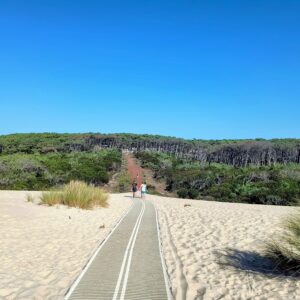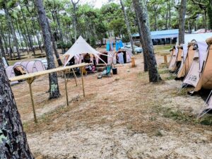 Nach rund 20 Stunden Busfahrt – Abfahrt am Freitagmittag, Ankunft am Samstagvormittag – hieß es zunächst mit müden Knochen: Ankommen und Durchatmen. Das idyllische Zeltlager im Strandkiefer-Wald wurde bezogen, Zwei- bis Drei-Personen-Zelte eingerichtet und die Umgebung erkundet. Viel gab es dort nicht außer Wald, Strand, Wellen – und genau das war perfekt. Schließlich stand das Wellenreiten im Mittelpunkt der Woche.