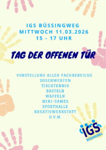 Der Tag der offenen Tür bietet eine ideale Gelegenheit, die IGS Büssingweg persönlich kennenzulernen, Fragen zu stellen und mit Lehrkräften sowie Schülerinnen und Schülern ins Gespräch zu kommen.
